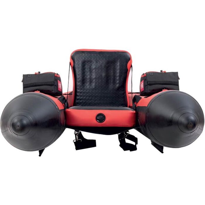 Float tube híbrido en PVC de 1 200 deniers. Está reforzado con una hoja adicional de PVC para evitar dañar la superficie y obtener una mayor solidez y durabilidad. El interior de esta estructura incluye una malla rígida de poliéster que retiene el aire, le da cuerpo y evita que se redondee como un globo una vez inflado. De esta manera, el float tube es mucho menos voluminoso y ofrece un espacio útil más grande que los float tubes tradicionales. Gracias a esta fabricación, puede inflarse a una presión mucho más alta que un float tube de PVC estándar, hasta un máximo de 15 PSI (1,03 bar). Con todas estas características, el float tube es más resistente, más rápido y ofrece una navegabilidad óptima, con una capacidad de carga superior a la de un float tube de PVC estándar. Viene equipado con un asiento de alta presión, bolsillos de PVC rígido de gran capacidad, una barra de refuerzo de aluminio y remos. También incluye un soporte para motor eléctrico en la parte trasera y quillas para una mayor estabilidad y maniobrabilidad. Se vende con una bomba de pie de alto flujo y una bolsa de transporte.