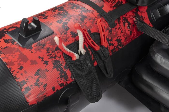 Pato de grandes dimensiones construido en PVC de camuflaje pixelado, de alta resistencia y con juntas reforzadas y termo selladas. Está fabricado con la tecnología HART PVC – BYLAYER que incorpora un recubrimiento interior de poliéster de 1000 denieres que mejora su resistencia y durabilidad. Gracias a sus dimensiones y construcción, el SIKKARIO 8K está pensado para conseguir una perfecta flotabilidad, soportando los pesados equipos que llevan los pescadores hoy en día, sin perder navegabilidad. Balones reforzados en su parte inferior para evitar posibles daños, si por ejemplo arrastramos el pato. Dos bolsillos rígidos laterales impermeables fabricados en PVC de 520x240x130 mm. Un bolsillo de proa de forma trapezoidal 400x220x260 con tapa rígida que evita que entre agua en el interior incluso en jornadas de pesca muy lluviosas. Innovador sistema de movilidad de los bolsillos sin necesidad de desmontarlos. Asiento sobredimensionado que nos ofrece una gran libertad de movimientos en acción de pesca. Sistema de fijación del asiento reforzado para conseguir la verticalidad del respaldo en todo momento. Barra anclada en uno de los extremos para facilitar la apertura. Incorpora fundas porta herramientas, para tener a mano en todo momento tenazas y tijeras. Cuenta con 5 asas reforzadas para facilitar su transporte: 2asas centrales, pensadas para transportarlo individualmente y 2asas en popa y 1 en proa para trasladarlo entre dos personas. Está provisto con un soporte de motor tipo torpedo en su parte inferior. Se sirve con bomba de pie de gran caudal y bolsa de transporte. Equipado con válvulas universales.